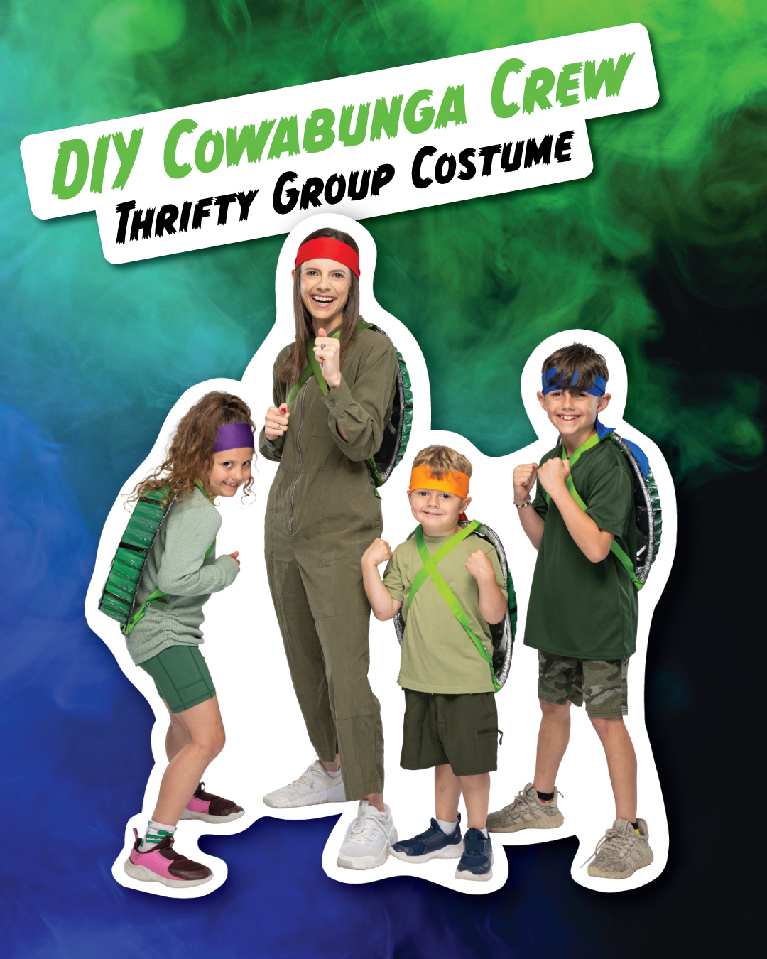 Looking for an easy, affordable and totally radical costume idea for you, your whole family or a friend group? Whether you’re headed to a Halloween party, cosplay event or just want to show off some turtle power, this DIY cowabunga crew costume has your back. The best part? It’s made mostly with thrifted finds, including a genius turtle shell hack using a roasting pan. Yes, you read that right.